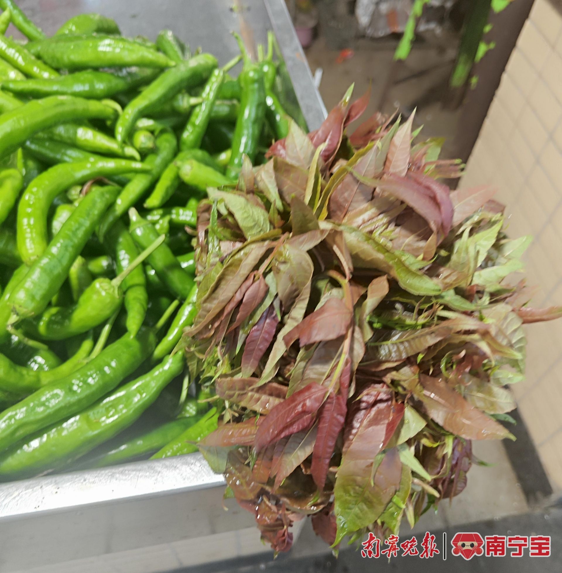 当天上午,在南宁市淡村农贸市场,各摊位摆放着各式各样娇嫩欲滴的春菜,有荠菜、春笋、芦笋、香椿、韭花、南瓜苗、空心菜......春菜还带有晶莹剔透的晨露,着实新鲜诱人。